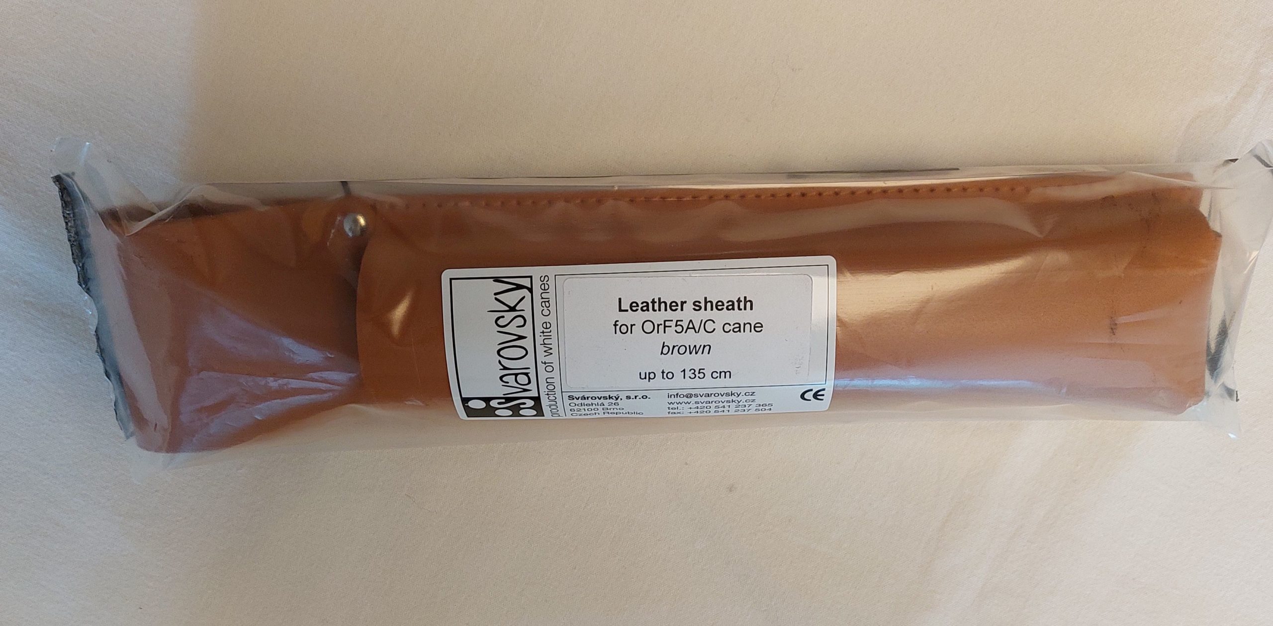 Botvédő tok ORF5A és ORF5C típusú fehérbotokhoz, bőrből. Valódi bőrből készült, bújtatóval akár nadrágszíjra is fűzhető, elegáns kiegészítő. (ideális botméret: 135 cm) Színe: világosbarna.